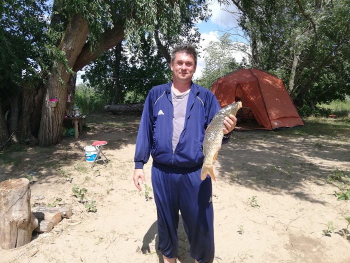 В принципе, осень 2019 - как и весна прошлого года - это полный облом и пролёт. Осенью решили ехать на Ахтубу в Михайловку. Паромщик весной все сетовал, что хочет продать паром, по прибытию парома на месте не оказалось - продал. Поехали в следующее село - Бугор. Там переправились в пойму и встали на малой гороховой яме. Пока ставили лагерь, по берегу пришли волгоградцы, приехали на выходные, спросили можно ли у нас тут с берега покидать. Нам всегда не жалко. Часа за 2 они вытащили 3х судаков и мы с ними даже сфотографировались.