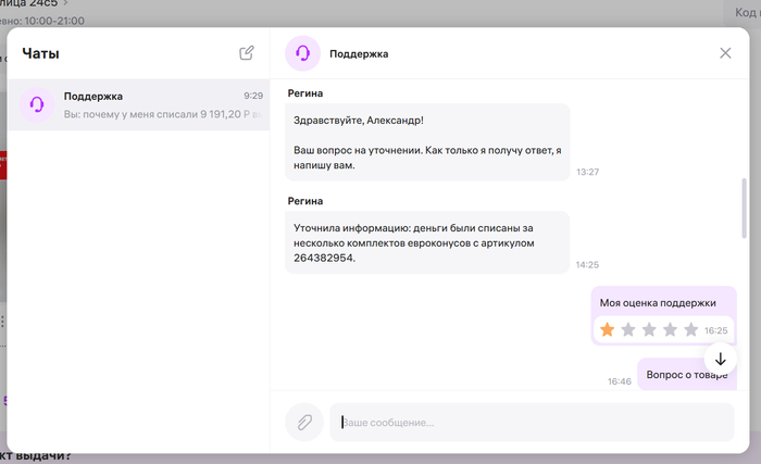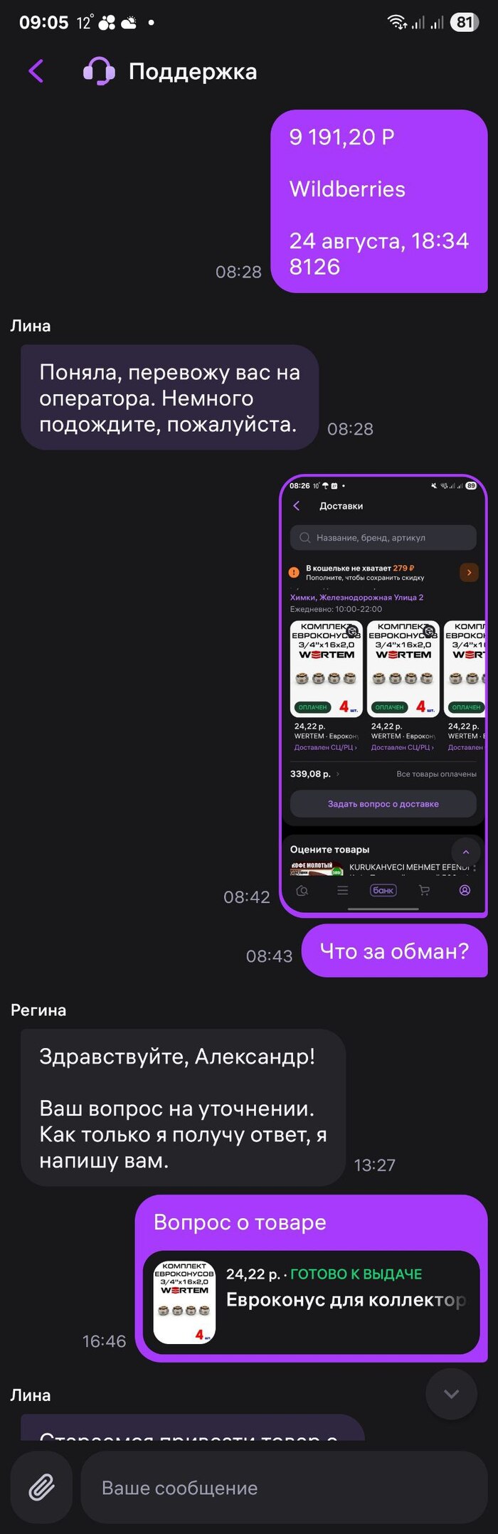 С знатно полыхающей жопой бегу к ии писать досудебку, открываю браузерную версию Вб, чего в жизни не сделал, если не поиск реквизитов, а там ответ поддержки другой.