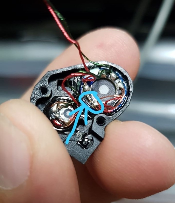 В ПРАВОМ наушнике, через месяц, по моему предположению, сломался кроссовер, пропал контакта с 3 излучателями (отвечающими за низ и середину). Повторюсь, не знаю, работает ли кроссовер по своему назначению или это просто бутафория, но совершенно точно через данную плату идет соединение.