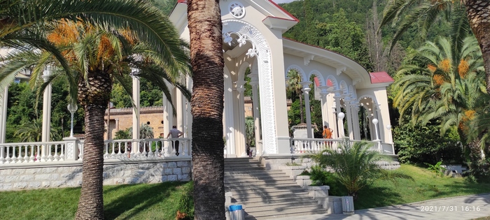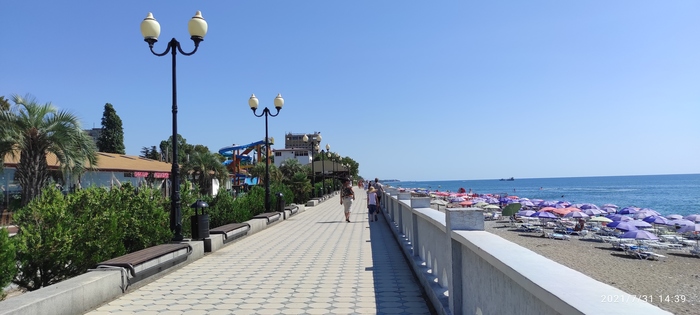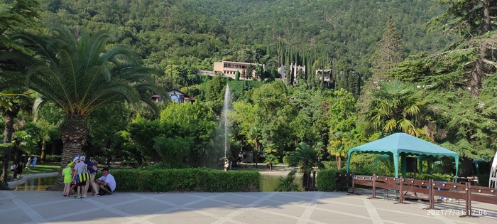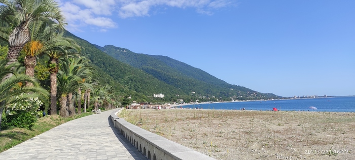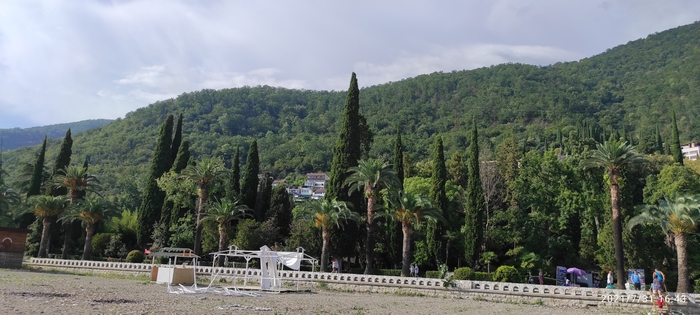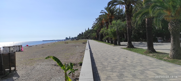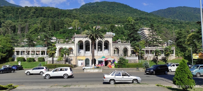 Первый день в пути. Для обкатки и привыкания к норову коня, маршрут выбрал в сторону Гагры, пилить туда 20 с копейками км. С утреца до 12:00, помочил хозяйство, потом солнце уходит в зенит и пляж становится сковородой в аду. Лучше всего переждать, часиков до 16:00, где нибудь в прохладе. Пообедав на скорую руку, выдвинулись искать приключения на свою опу. Доехали до места прогулки без приключений, единственный момент, в Гагры попасть ещё умудриться надо, с Сухумской трассы поворот или заезда всего два с одного края и с другого, первый я успешно пролетел. Машины, как и подабает, можно бросать, где приспичит, за парковки здесь никто не нагибает, лишь бы проезд оставался открытым.