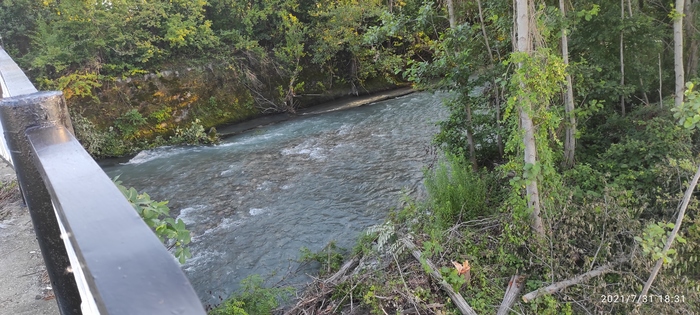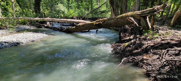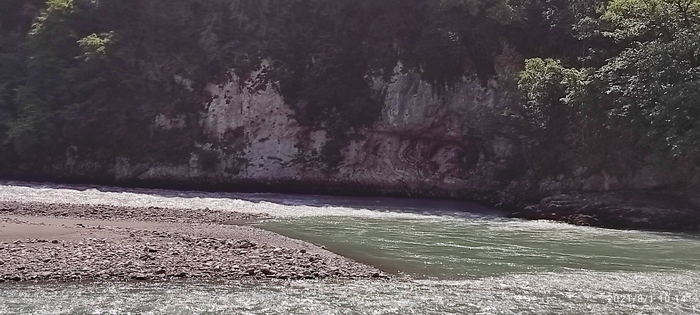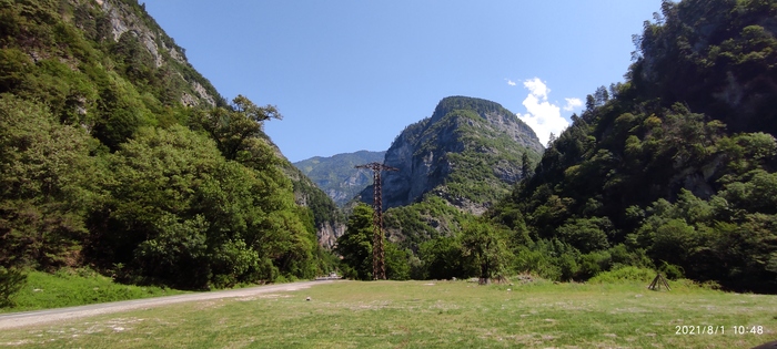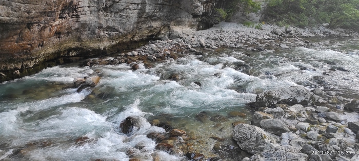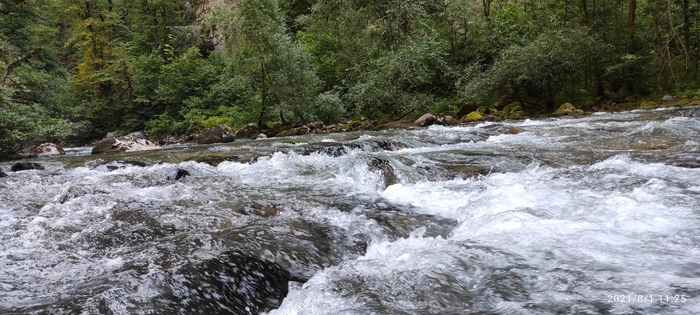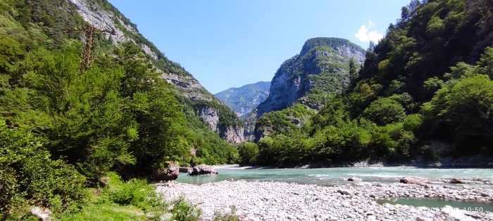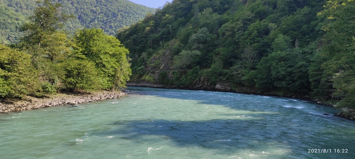 Дороги просто сказка, на всем пути следования новый асфальт. Первая остановка в начале пути, замечательный вид на горную реку Бзыпь, путь пролегает и вдоль и поперёк её.