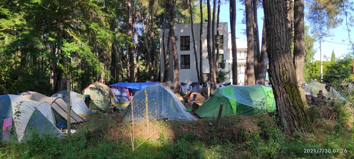 По мимо духоты, нас встречали добрые "цыгане" (таксисты), готовые доставить нас сухопутных путем туда, от куда прибыл и совсем не "дорого". Включив броню, проходим со словами встречают или уже заказал, тогда табор теряет интересен к моей персоне. По факту такси "максим" выставил ценник в 460 за 4-х и багаж. За пять минут подкатил пепелаций и отвёз на границу, примерно 10 км, указав направление куда пилить. Граница нас встретила без особого интузиазма в глазах, не обнаружив брюликов и шмоток от Гучи. На стороне РФ, если и пытались проверить память, стандартными вопросами: фио, год рождения. То Абхазкая таможня, для формальности взял паспорт, покрутил в руках, так и не открыв, пропустил без лишних вопросов. На все про все, 7 минут.