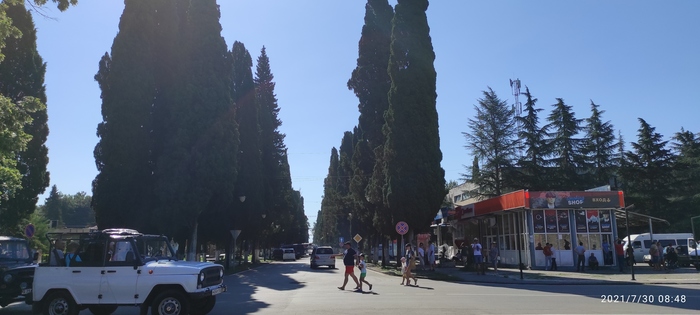 Как оказалось, табор, встречал меня и на той стороне. То ли они знают короткий путь или у них телепорт, но один в один все предлагали денег за честь довезти нас, хоть до дачи Сталина или Хрущева. Но тут я проявил стойкость духа, увидев на своём пути ларёк местного мобильного оператора Аквафон, переступил порог сего заведения для оформления сим, и спам рассылки на новый номер. Сия услуга обошлась в 950 деревянных, 350 за сим, 550 тариф (4 Гб, и халявы звонков внутри сети) и полтинник хз за что взяла, но он успешно упал на баланс (звонок на родину будь то Пермь или Хабаровск, стоит 9 р в мин). Видимо барон цыган, нашёл в моей броне прореху, и смог убедить меня отвезти в Пицунду всего за полтора рубля. (50-60 км).