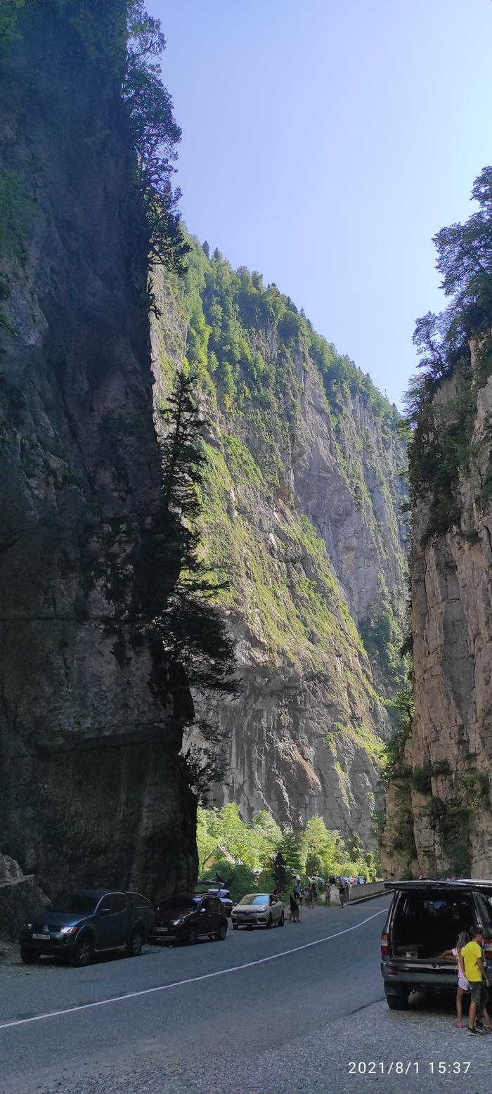 По маршруту следования, находятся водопады, девичьи слезы, мужские слезы (на фото), девичью не стал снимать, видимо одна из остановок тура, вся обочина забита машинами, да и смотреть на плачущую гору не очень то и хотелось