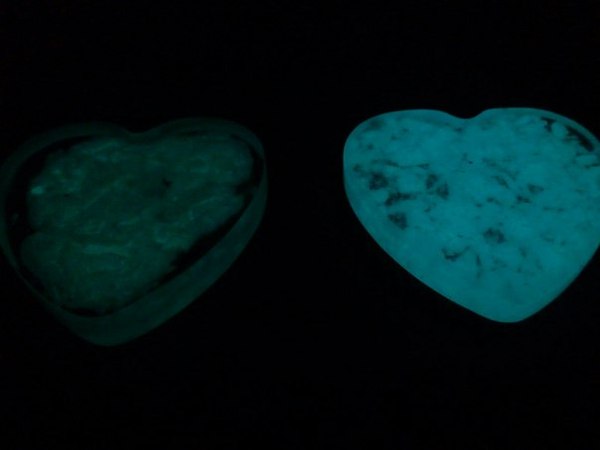 А в темноте (после того, как полежит на свету), получается вот так: