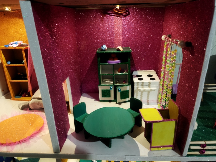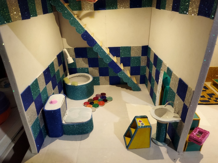Мой день выглядел забавно: с утра по дороге в садик сбор пожеланий, затем хоз работы по дому ( не больше 2х часов) и часов 8 работы над домиком. Вечером муж просто отнимал нож и карандаш, и прогонял отдыхать.