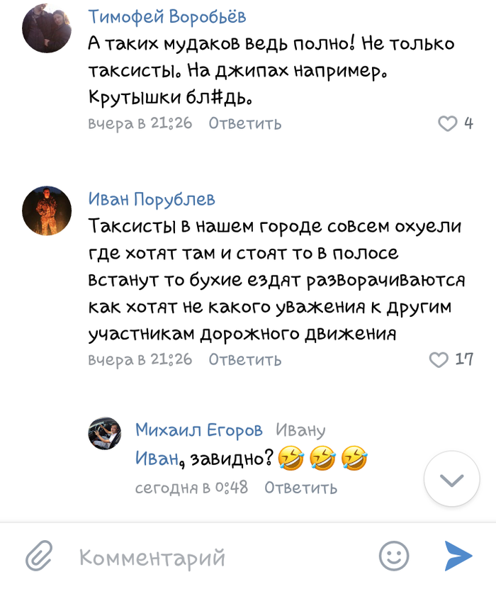 Очередной пост о неправильной езде в местном паблике вызвал тонну ненависти и предложений "гасить мусорских" епта.