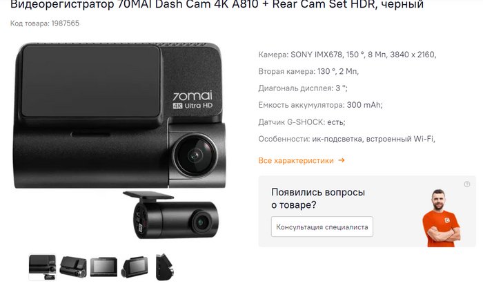 2 - 70mai a810+rear cam. Снимает спереди и сзади, но непрерывно, даже когда авто заглушен. Глубина архива чуть больше суток.