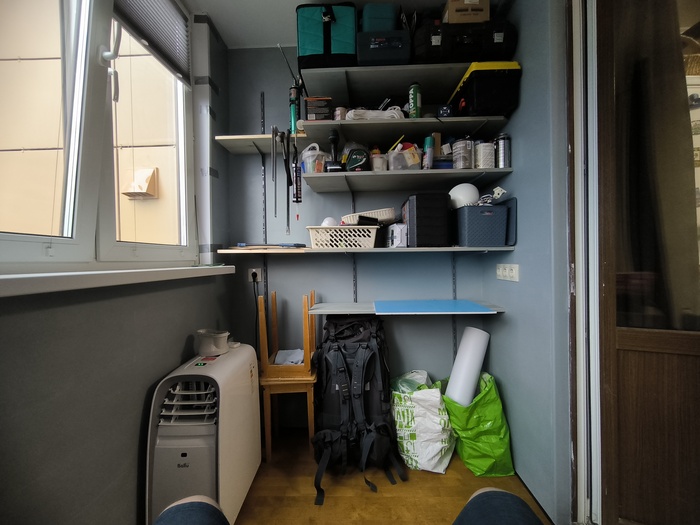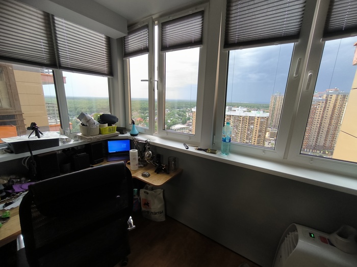Я и раньше работал на балконе, был мало-мальский ремонт, свет, стул, стол. Внутри все было зашито вагонкой, бытовка прораба - просто и без изысков. Но по весне пошли дожди и как-то придя домой обнаружил лужу на столе. Лет 5 назад я уже судился с управляшкой по этому поводу, но хули нам, конторе пидорасов толку, если это брак при строительстве, а никто ничего не делает и не планирует.