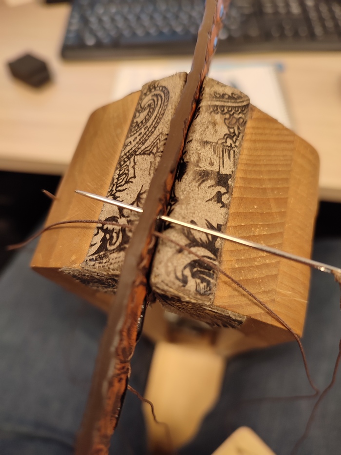 Проклеил шов и сшил окончательно. После чего прокрасил торцы. Для первого раза получилось сносно. Есть конечно косяки, но все поправимо. В дальнейшем нужно будет уменьшить ширину подносника, слишком широкий вышел.