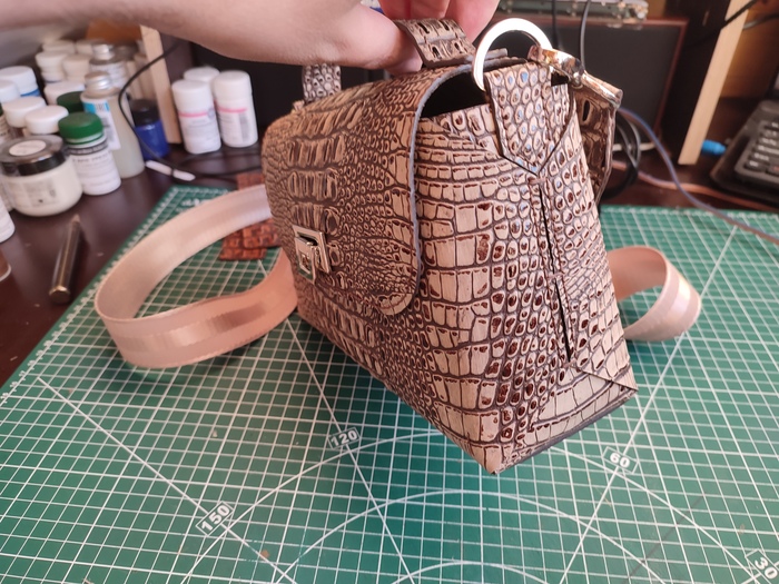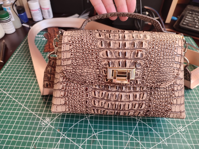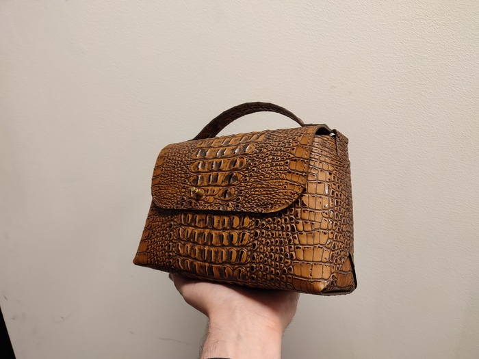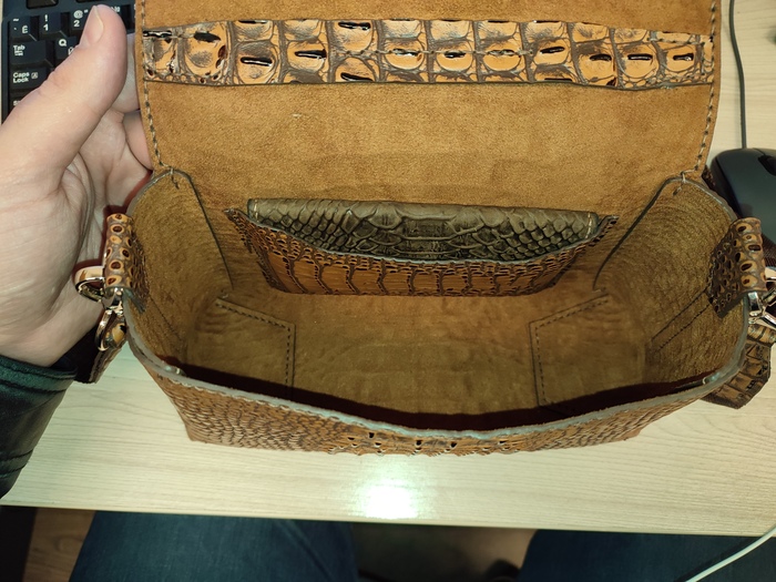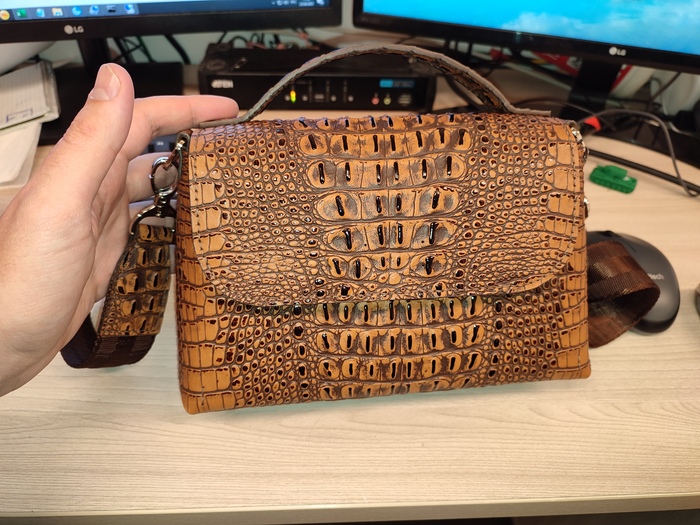 В продолжение предыдущего поста, аналогичная сумочка из коричневой кожи. Полностью дошита, только без застежки, закончились, а я не заметил.