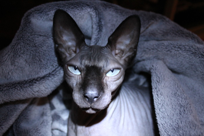 Засунула я несчастную животинку под одеяло, приласкала, погладила. И откуда, скажите мне внутри кошки мотор от Татры. Лежит Ксюня под одеялом, нос мне лижет и тарахтит. Говорят, кошачье мурлыканье снижает давление и нервы успокаивает, это было весьма кстати, потому что я уже минут 40 боролась с желанием запихнуть Ксюху в переноску, а она с гораздо большим успехом боролась с моим сном.