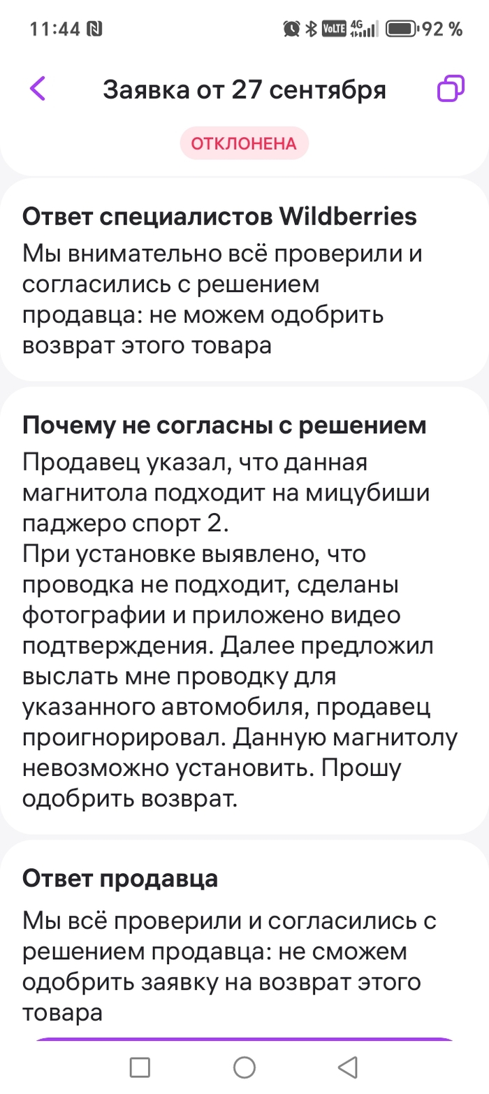 Приехал в выходной устанавливать, а шлейфы не подходят. Сделал фотки подал заявку на возврат. В возврате продавец отказал. Написал в тех поддержку и там отказали.