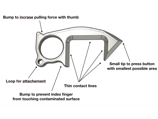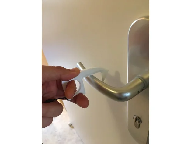 На работе и в магазинах избежать дверных ручек почти не реально, а количество грязи и потенциальных вирусов на них как орков во время WAAAGH, задумавшись над этой проблемой с учетом современных реалий потенциальной эпидемии, я отправился на поиски решения в эти ваши интернеты. В общем нашел на довольно известном сайте такой вот крючок для дверных ручек с возможностью открывать большинство дверей, нажимать кнопки лифта или терминала оплаты/банкомата не касаясь их руками. Девайс очень простой, печатается на 3D принтере за час, весит в районе 10грамм, т.е. себестоймость при печати PLA или ABS в районе 10-15 рублей и стоимость на продажу ну рублей 50 максимум. Я напечатал такой себе из PLA+, проходил с ним день на работе и по магазинам, как результат, я ни разу не коснулся дверных ручек руками за весь день, неудобства в использовании не заметил, сабж ношу в маленьком кармашке на джинсах, туда он отлично помещается. Поскольку свой крюк я напечатал из PLA+ то он отлично моется с мылом и протирается спиртом/гелем для рук/перекисью, я лично на работе в раковине мыл с хоз. мылом и дома с антибактериальным. В общем, если у вас есть возможность напечатать или заказать печать, то очень рекомендую такой крюк к приобретению, однако стоит учитывать, что в конце дня, место где вы его храните (карман, ключница etc.) стоит обработать санитайзером. Печатайте себе и своим знакомым и близким.