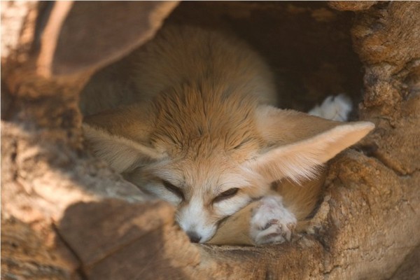 Эта песчаная лисичка – ночное животное. Поэтому большую часть светлого времени суток она проводит в своей норе, представляющей собой обширную систему туннелей со множеством входов и выходов.