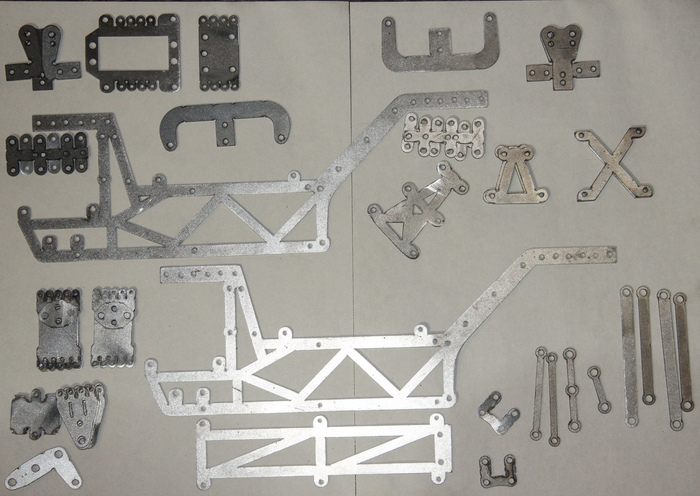 За счёт трёх треугольных деталей и двух х-образных, боковины рамы сразу же заняли в пространстве симметричное положение.