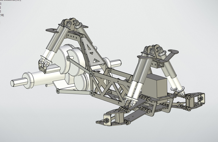 Вот подвеска передних колёс, тут конструкция оказалась неудачной, уматерился, пока собирал, но об этом позже.