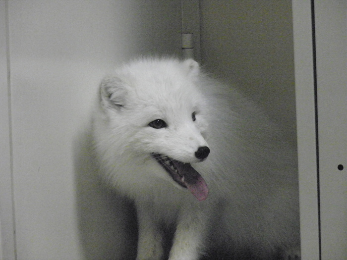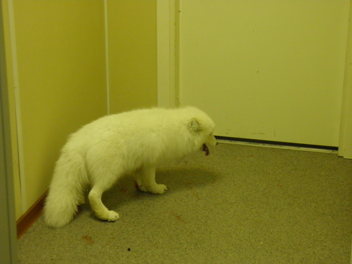 За время рабочего дня песец отогрелся, наелся, напился и начал просится на улицу