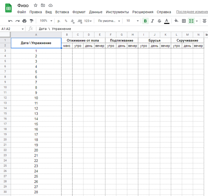- выполнить упражнение, например отжимание от пола, и прописать число выполненных повторений.