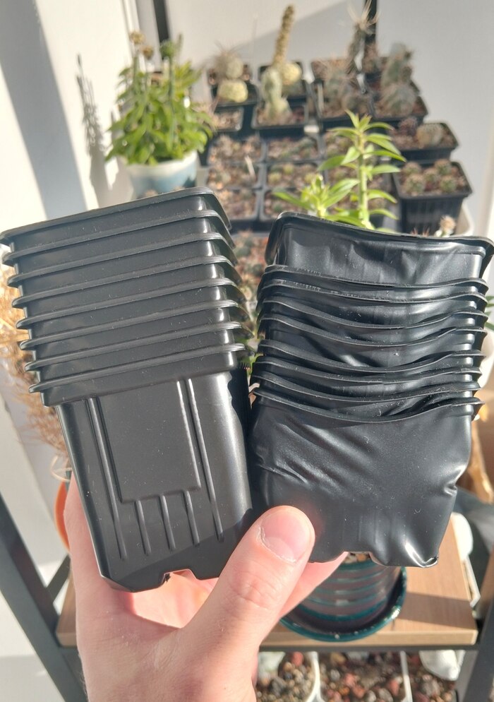 Так вот, после я просто оставил их на балконе. А когда пришло время пикировать сеянцы, я увидел, что чужие горшки расплавились. РАСПЛАВИЛИСЬ, КАРЛ! Просто лежа на балконе, ахаахах, о качестве наглядно.