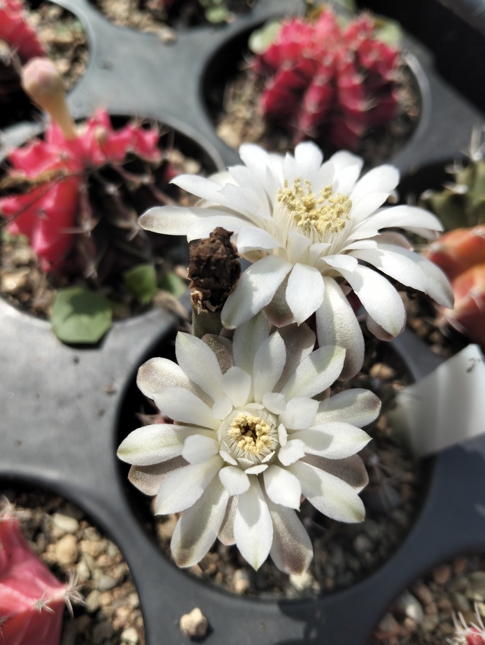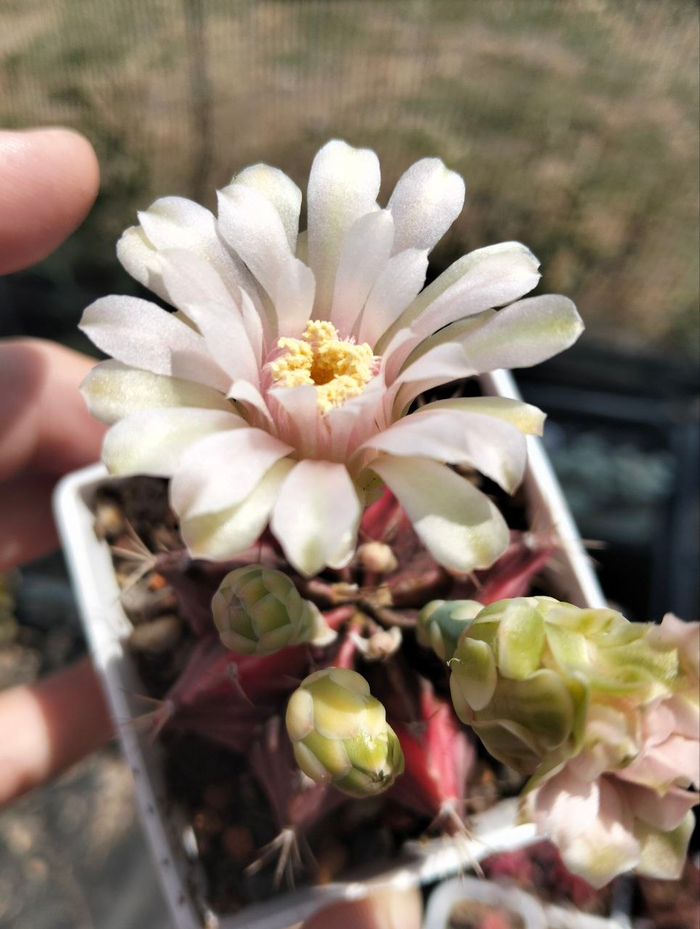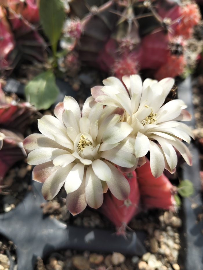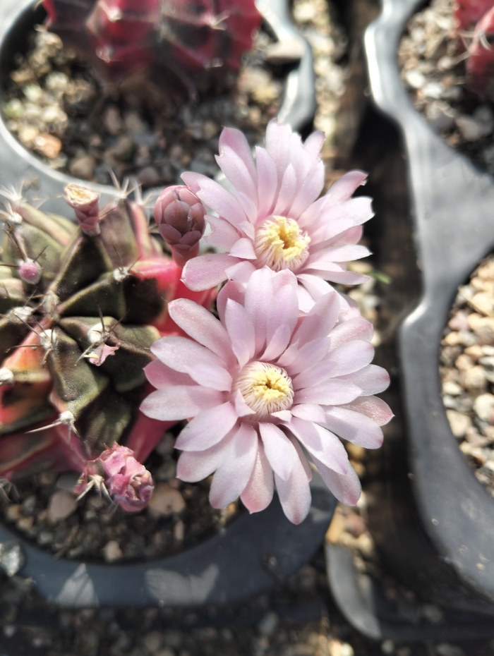 Цветущие Gymnocalycium mihanovichii variegata из личной коллекции.