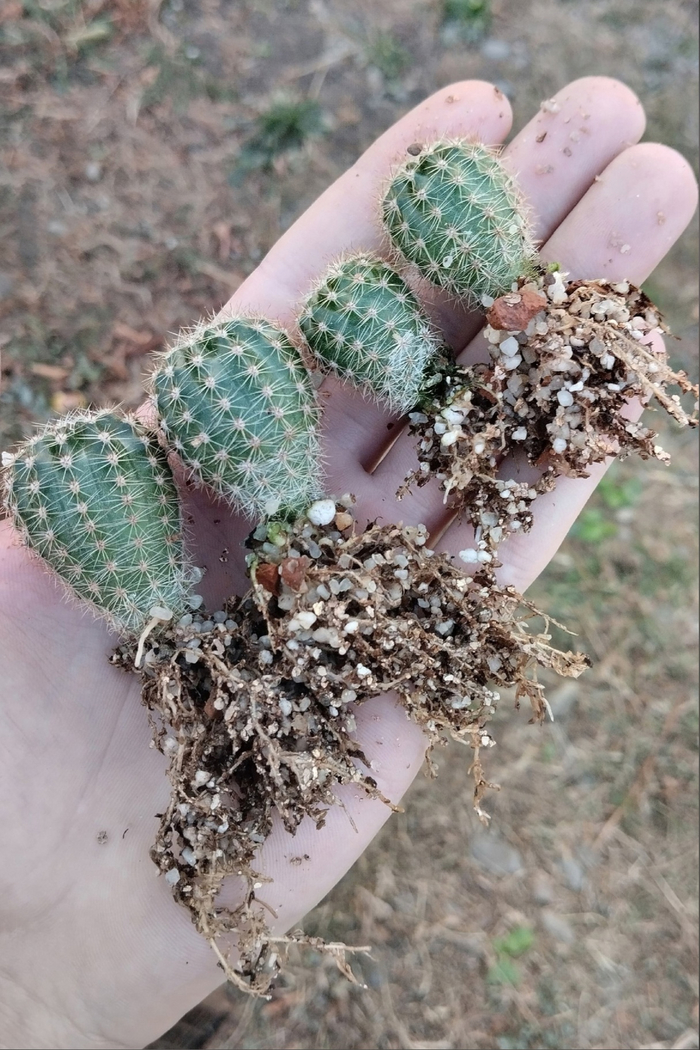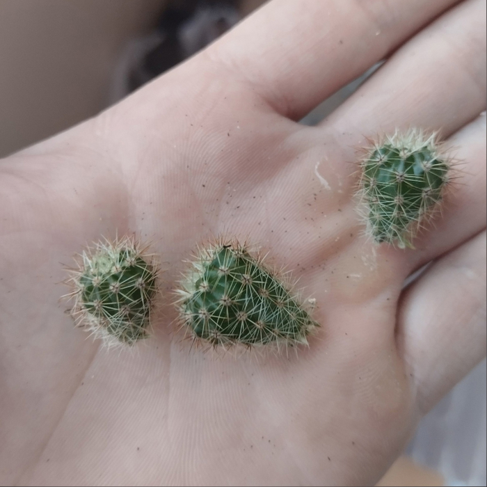 Эти эхинопсисы так и не видели землю. Отломил от материнского растения и просто положил на горшок с грунтом, без каких либо танцев с укоренением.