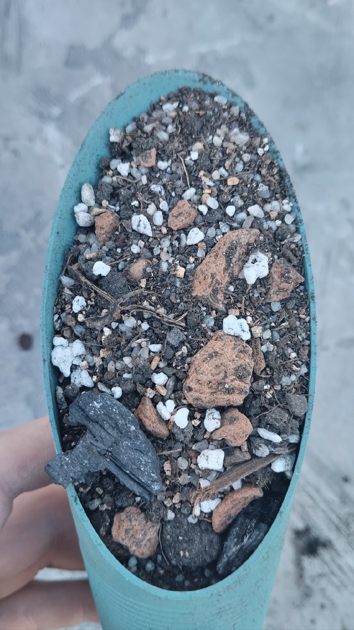 Кирпичная крошка. Не обязательно, но если есть, то почему бы не добавить. Рыхлит, впитывает влагу. Использую красный глиняный кирпич, перед добавлением в грунт хорошо промываю водой от пыли. У меня на фото тоже довольно крупная фракция. Подбирайте под размер вашего растения и горшка.
