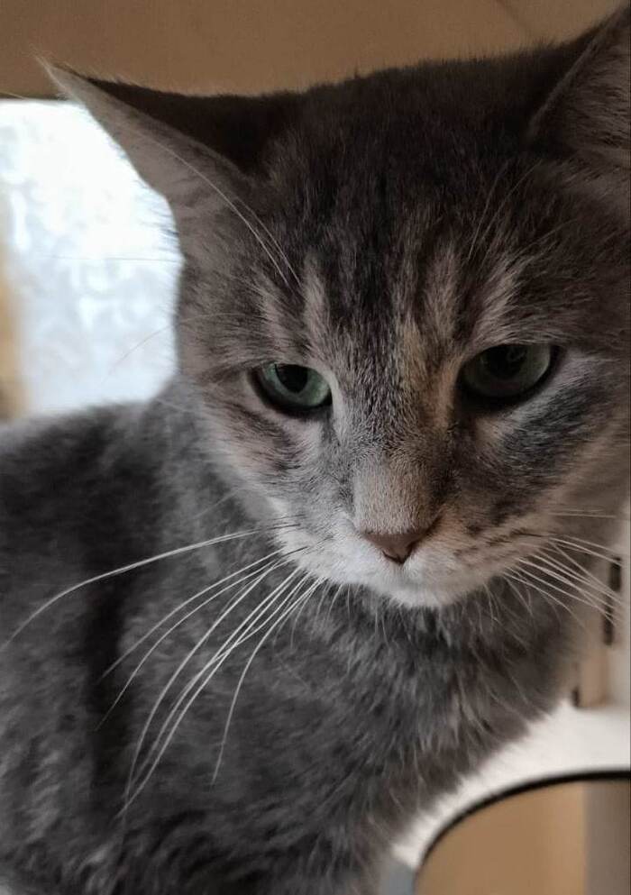 Ей примерно 3 года. Найдена в крайне истощённом состоянии, откормлена, сейчас совершенно здорова, стерилизована, анализы на инфекции отрицательные. Характер нордический.
