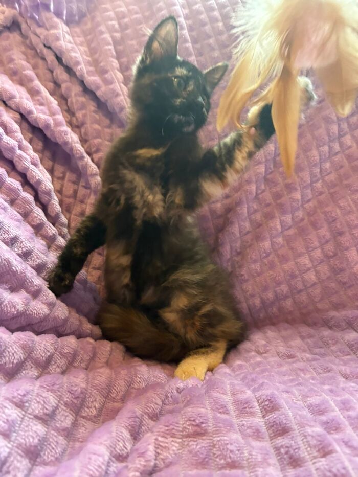 Малышка Мерседес чудесный котенок, добрая, ласковая, игривая, тактильная, очень любит гладиться, мурлыкать. Лоток на отлично. Первоначальные обработки проведены. Кошачий этикет освоен. Мерседес 3 месяца, нежна во всем. Любит побаловаться, поиграть с мышками, удочками