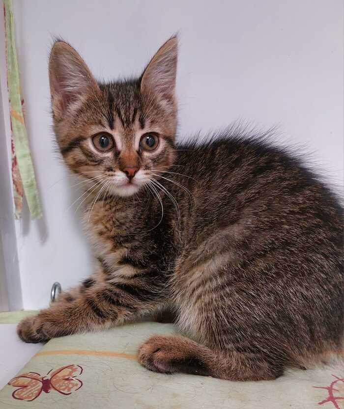 Симона настоящая кошачья Принцесса. У нее невероятно красивый мраморный окрас и пушистая шубка. Как все принцессы, Симона своенравна, но при этом добрая, ласковая и позитивная кошка. Любит мягкий корм. Симона - весёлая гордая болтушка, расскажет обо всем что видит. Кошка-подруга. Будет нежно любить и заботиться о вашем хорошем настроении, любит кривляться и строить умильные мордочки. Очень веселая малышка. Симоне около 3х лет, она привита и стерилизована. Лоток знает на 5. Познакомиться с малышом можно не далеко от платформы Красногорская Д2, буквально 6 минут пешком.