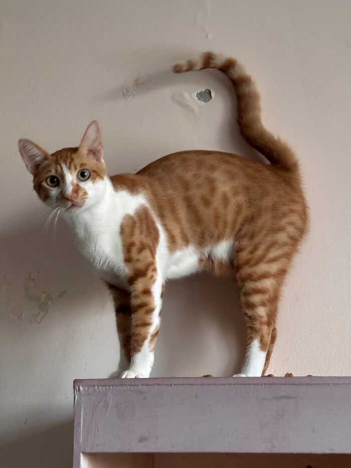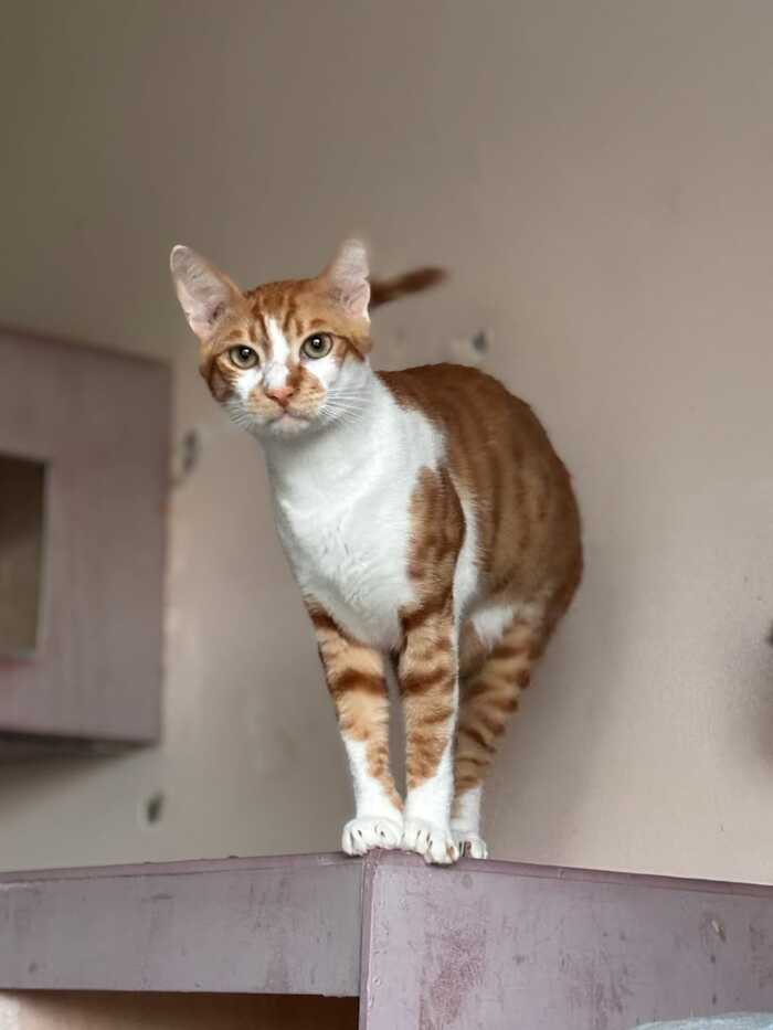 Маркиз чудесный подросток. Яркий окрас, Рыжий с белым. Весёлый говорун. Маркизу нужно время для привыкания, он ласкуша но только с теми кому доверяет, бодается лезет под руку, требует ласки и игр. Но нужно терпение к моменту знакомства и привыкания. Малыш очень красивый, как бенгал: длиннолапый тонкий грациозный. Будет прекрасным другом и компаньоном. Маркизу месяцев 10, ещё нет года. Кастрирован и привит. Лоточек на 5. Познакомиться с ним можно в нашем приюте находимся не далеко от платформы Красногорская Д2 буквально 6 минут пешком.