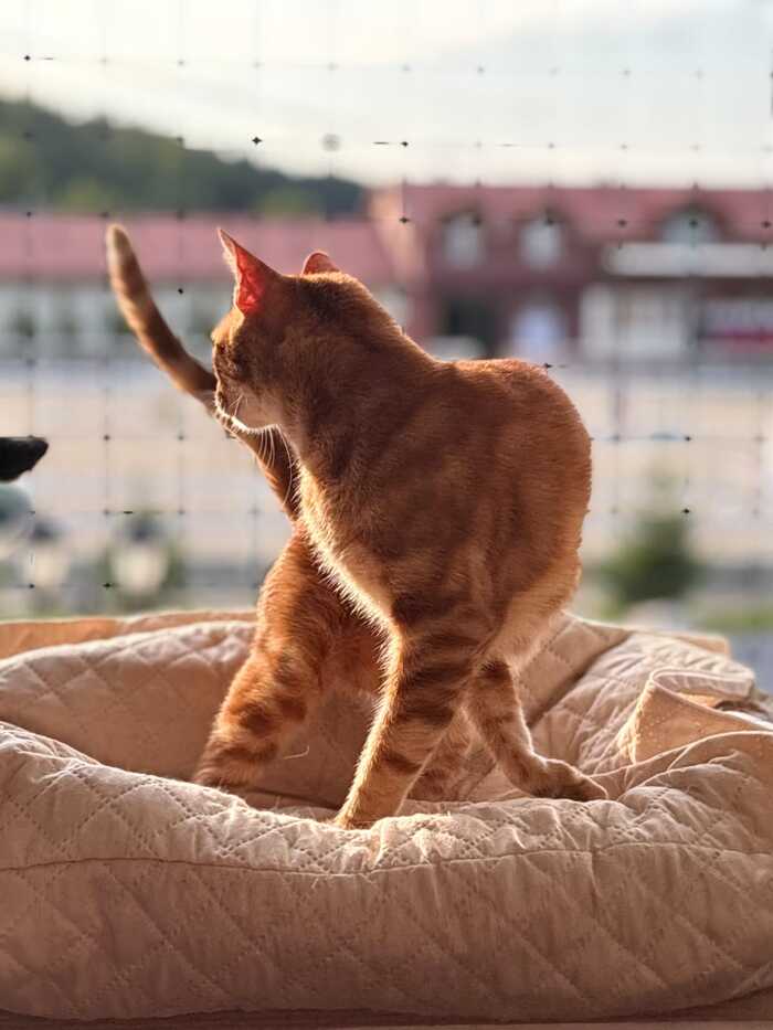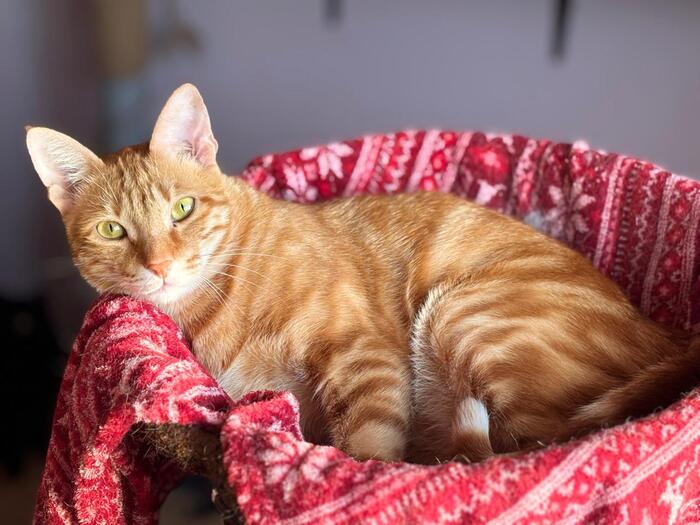 Яркий рыжий мраморный кот Гарфуша. Ему около 3 лет, он молод и полон сил. Требует уважения к себе и внимания. Невероятно элегантный, длиннолапый красавец, любящий поговорить, рассказать что видел, что думает обо всем, вспомнить сказки. Лоток знает на 5, привит и кастрирован. Хорошо ладит с другими животными, умён и культурен, интеллигент. Познакомиться с котом можно не далеко от платформы Красногорская Д2, буквально 6 минут пешком.