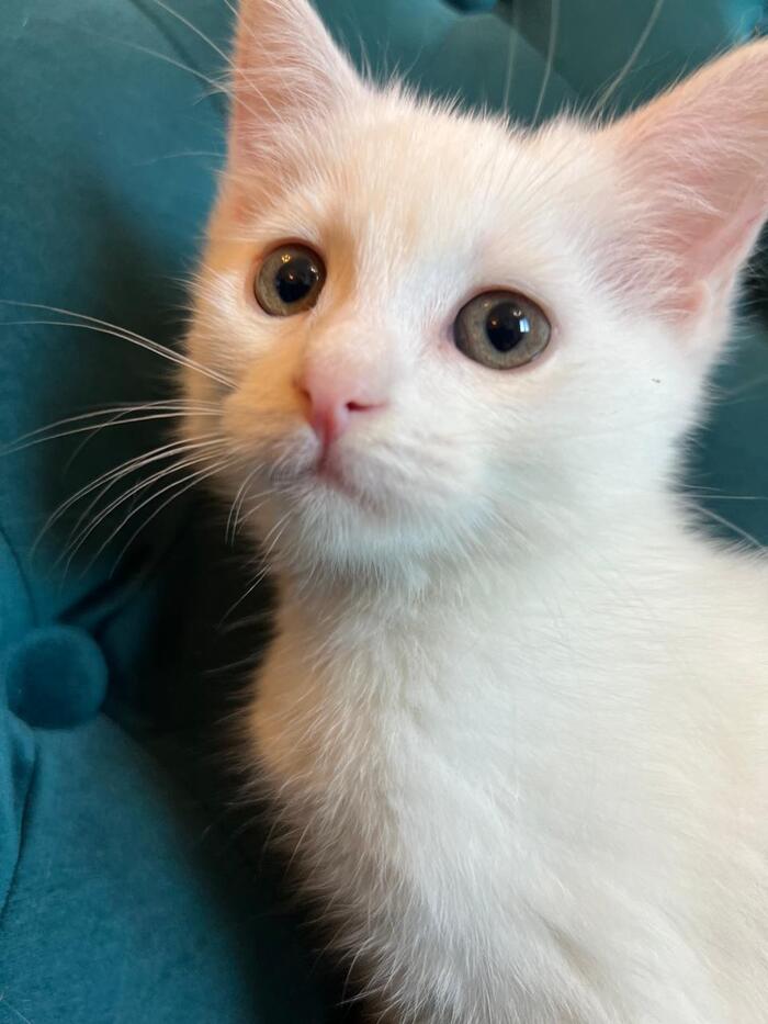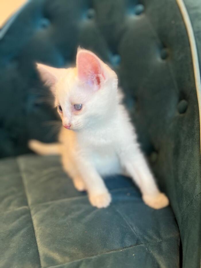 Котята, мальчик и девочка (на фото серое пятно между ушей). Возраст: полтора месяца. Лоток на отлично! Рождены от бездомной кошки. Осмотрены ветеринаром, прошли курс лечения. Сейчас здоровые, резвые котодетишки. Едят сухой и влажный корм «Про план». Отдам взрослым людям, после собеседования. Возьмите белых ангелочков в семью!