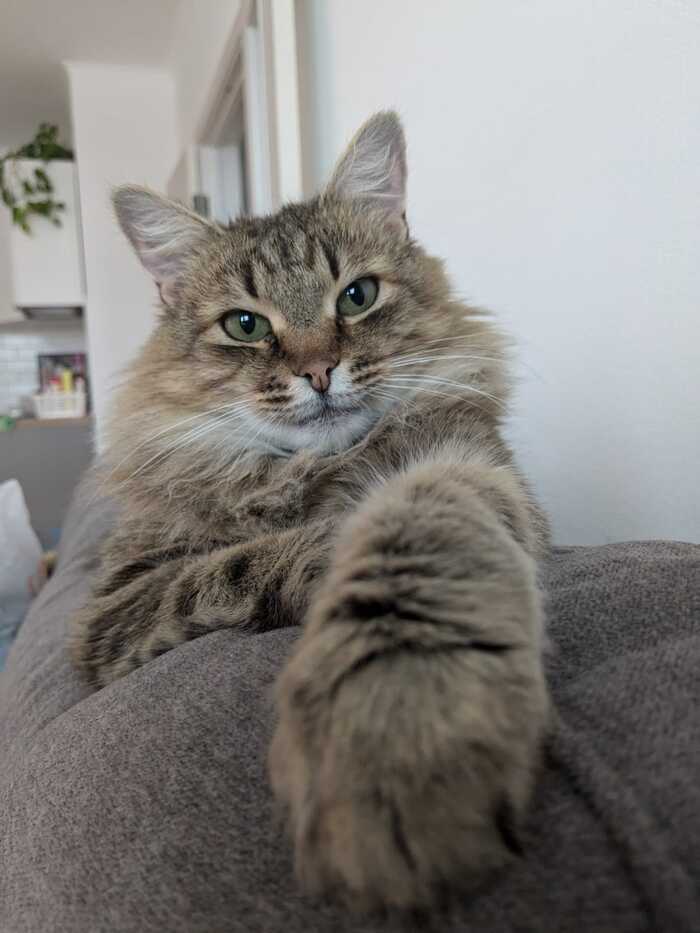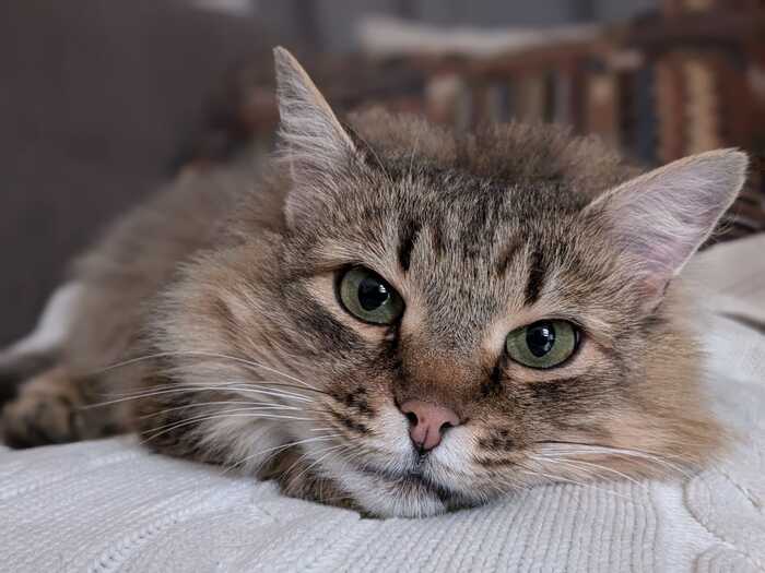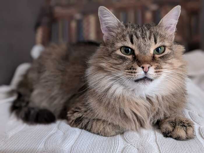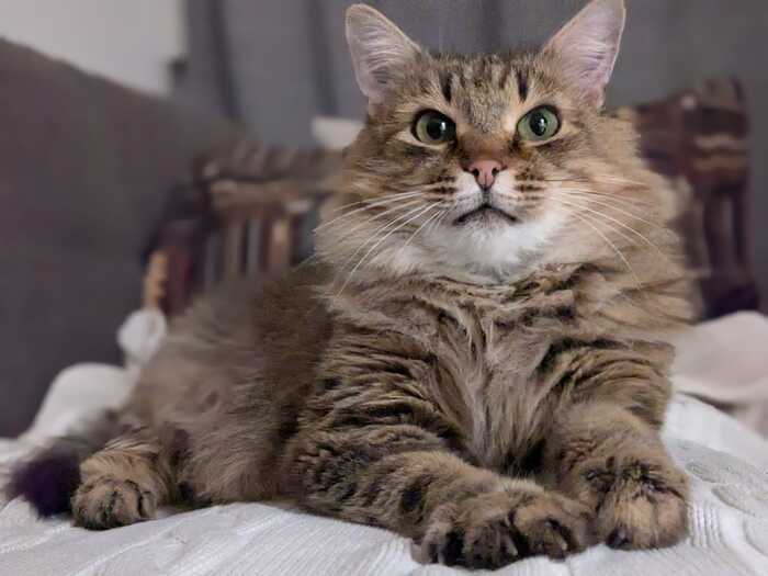 Марфа - зеленоглазая красавица и обладательница пушистой шерстки. Экстерьер сибирской породы. Характер спокойный, деликатный, ненавязчивый. Нежная и ласковая девочка. Дома ничего не портит, приучена к когтеточке, дружит с другими кошками.