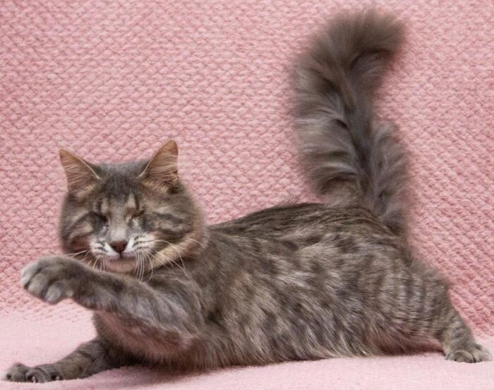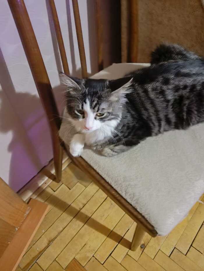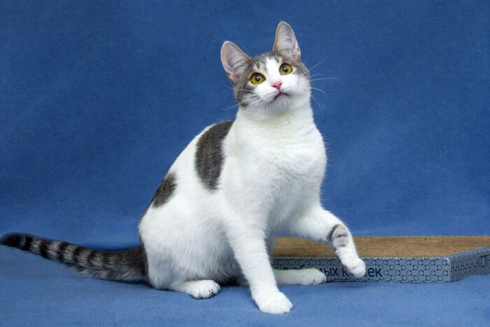 Кот очень добрый. Он живет в приюте с другими котиками и ему очень не хватает внимания. Стоит только появиться в дверях, он в первых рядах с просьбой взять его на ручки, и приласкать.