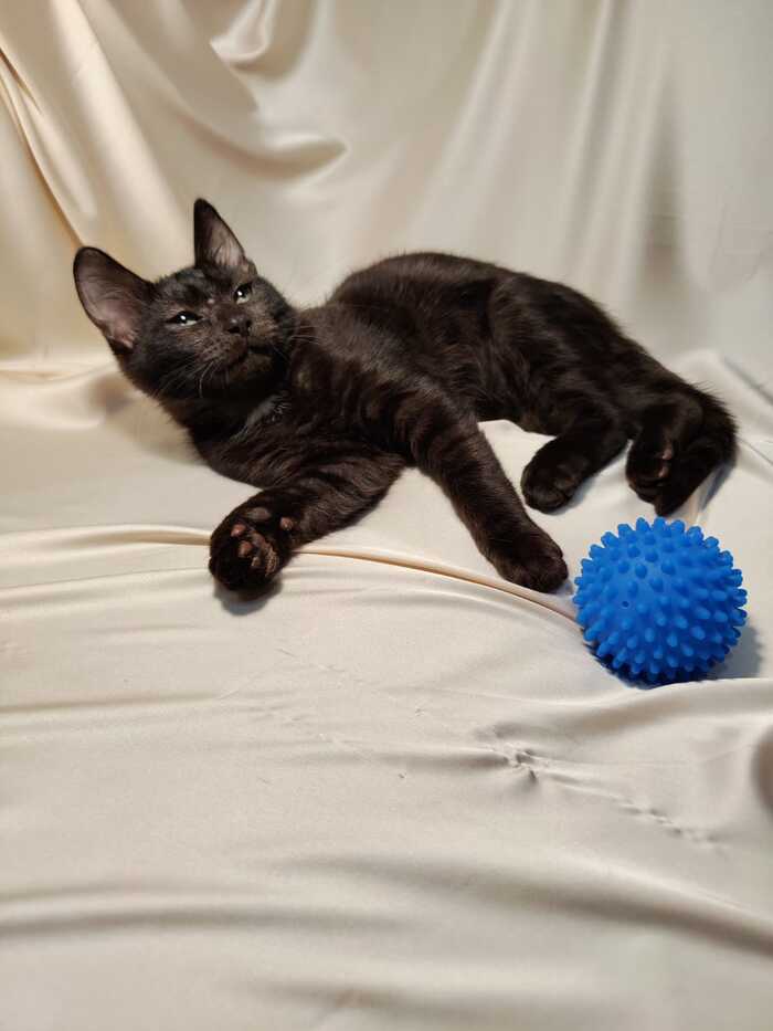 Ласковый и ручной кот Тимофей 6 месяцев. К лотку приучен. Когтеточку знает хорошо. Не кастрирован. Если надо в процедуре приму участие. От паразитов обработан. В еде не прихотлив. Очень любит вкусняшки «Дримис». В основном есть корм «Феликс». Контактный с людьми, но не очень с другими котами. Игрив и очень забавен.