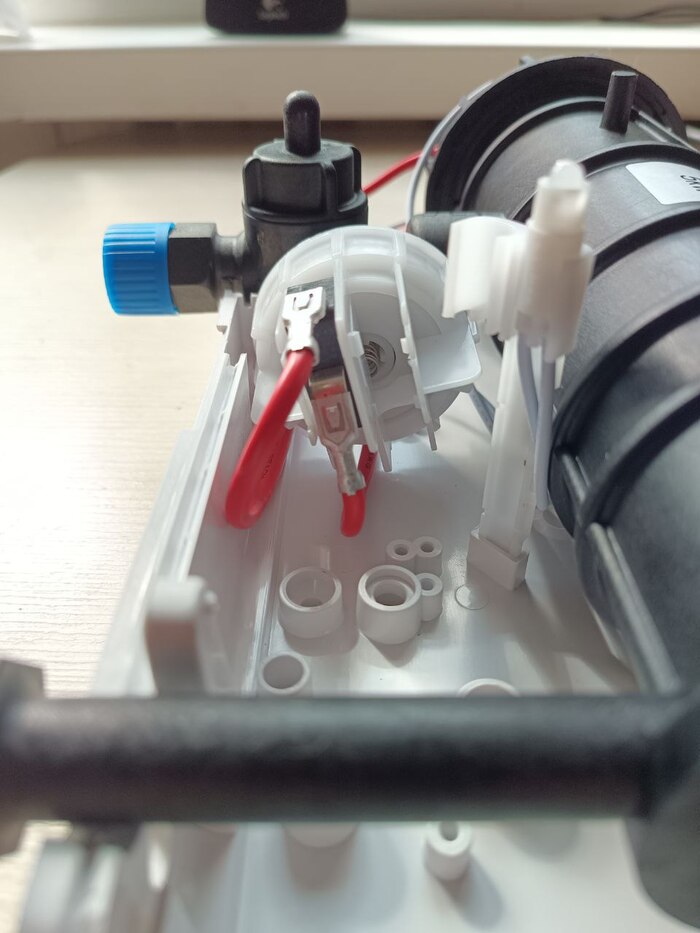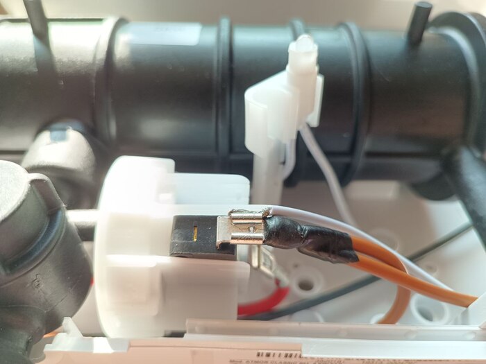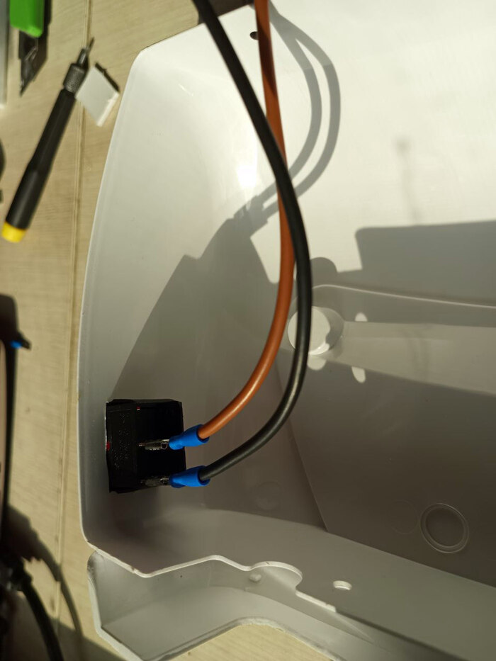 Я решил обеспечить себе возможность отключать один ТЭН, для чего снял штатный провод от клапана и поставил свои через выключатель. Светодиод пришлось повесить на клапан.
