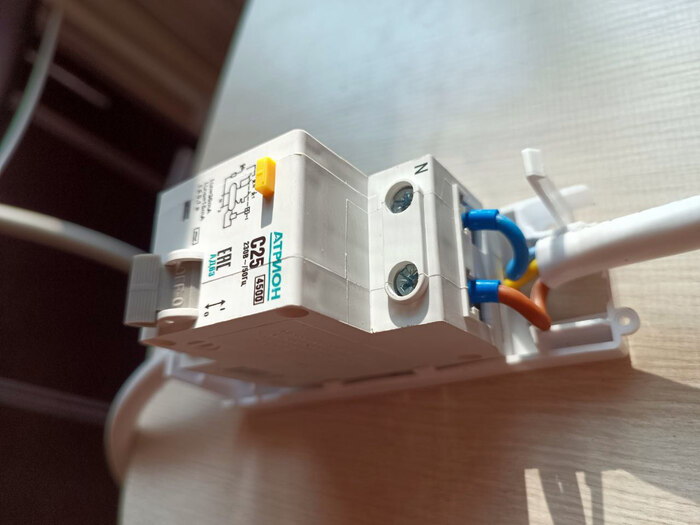 Включаю выключатель, подключая второй ТЭН. Через полминуты ситуация кардинально иная — вода из лейки льётся горячая. Увеличиваю напор регулятором нагревателя. На максимуме вода достигает комфортной для мытья температуры с неплохим напором из лейки. Ура? Как бы не так. Вода резко становится холодной — погас диод нагревателя. Смотрю на УЗО — включено. Нажимаю на нём кнопку «Тест» — не срабатывает. Иду к вводному щитку — выбило автомат. Да, это автомат на 25 А, но это советский АЕ20, мой ровесник. Взвожу и возвращаюсь в ванную. Через минуту — отстрел. Что ж, поеду за новым автоматом.