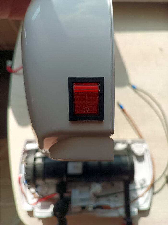 Методом канцелярского ножа я врезал выключатель в стенку корпуса нагревателя.