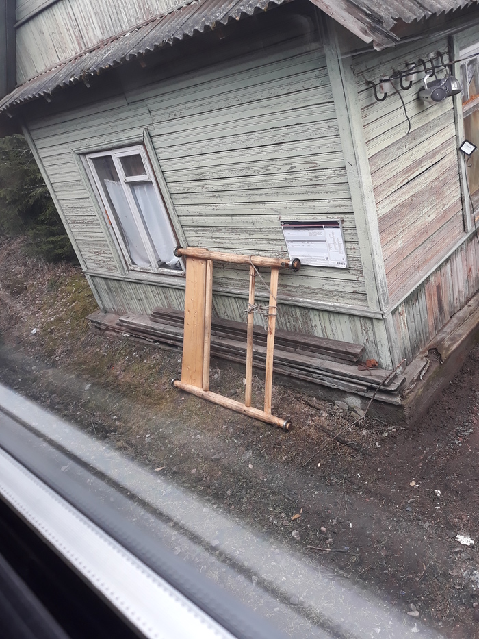 Фото из Электрички на ЖД станции Клённа в Ленингадской области, Кингисеппский район. Судя по габаритам и расположению подшипников - это для передвижения/перевозки по ЖД линии.