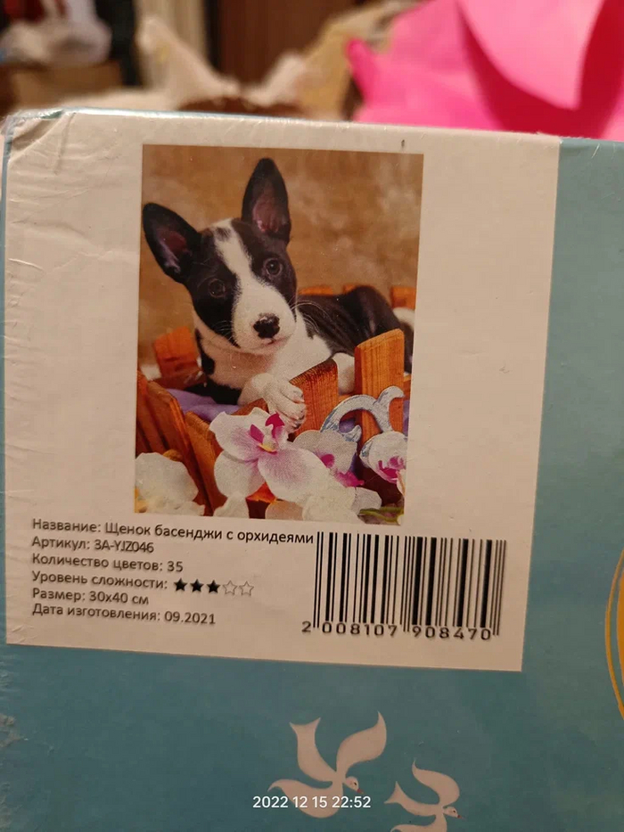 А еще я писала в интересах, что я тот еще рукоблуд и собираю всякие штуки-сувениры с собаками породы басенджи. И вуаля, двух зайцев одним подарком - картина по номерам с басе-щеником. Картину я пока не рисовала, но вот такой щеник должен получиться