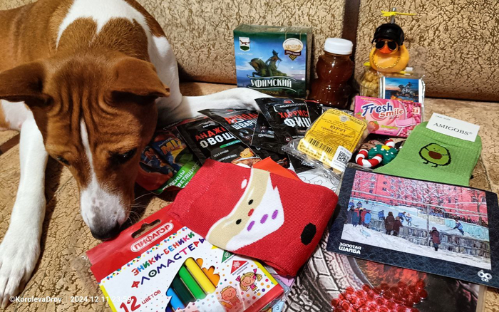 Подарок от моей Снегурочки Светланы пришел неожиданно рано - 15 декабря, вообще не ожидала, такой сюрприз получился) Еще больший сюрприз ждал меня на почте, коробка оказалась БОЛЬШОЙ. А в коробке еще и упаковано все в оберточную бумагу и с бирочками. Кайф. Перед распаковкой обязательная проверка главным таможенником Кирой, котоинспектор Рыс был занят важным делом. Один из свертков особенно заинтересовал Киру и не зря.