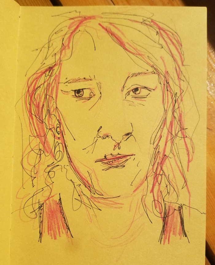 2 KorolevaZhaba Младшая Академия Художников А где-то уже осень 4 года назад Показать полностью 1 [моё] Рисунок Осень Ветер Шарф Гелевая ручка Фломастер Картон Ещё 0