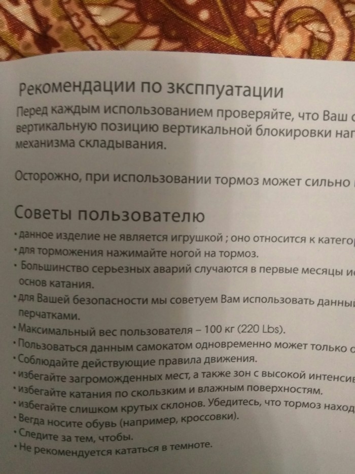 2 Kosh1808 7 лет назад Инструкция к самокату Предпоследний пункт радует. Как и 'зксппуатация') Показать полностью 1 Инструкция Фото на тапок Безопасность