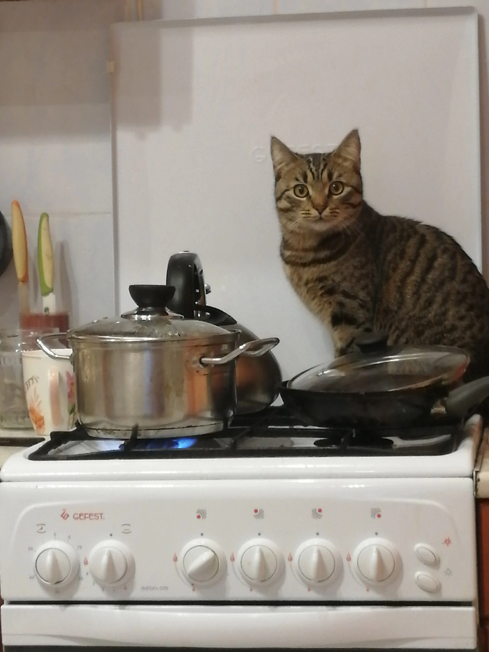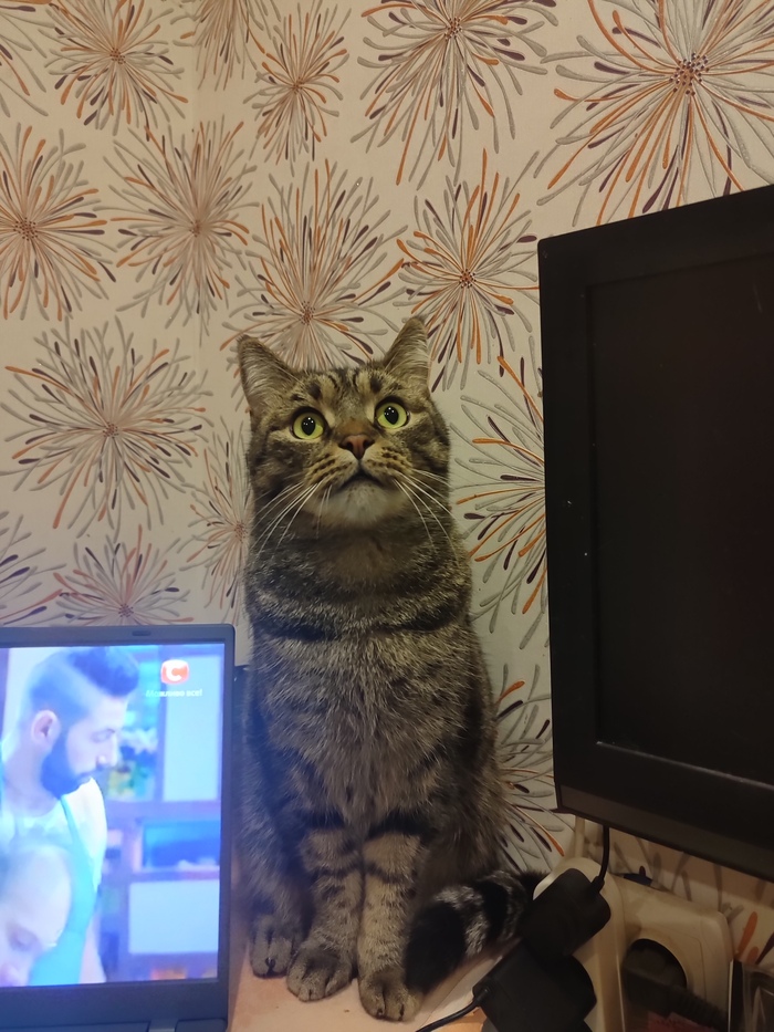 Вчера она куда-то спряталась, потом вылезла. Кот лежал дремал, а тут как подорвался, помчался к ней. Она кота увидела, и к нему. И ластится об него. А он ей макушку несколько раз облизал) видимо, будут дружить.