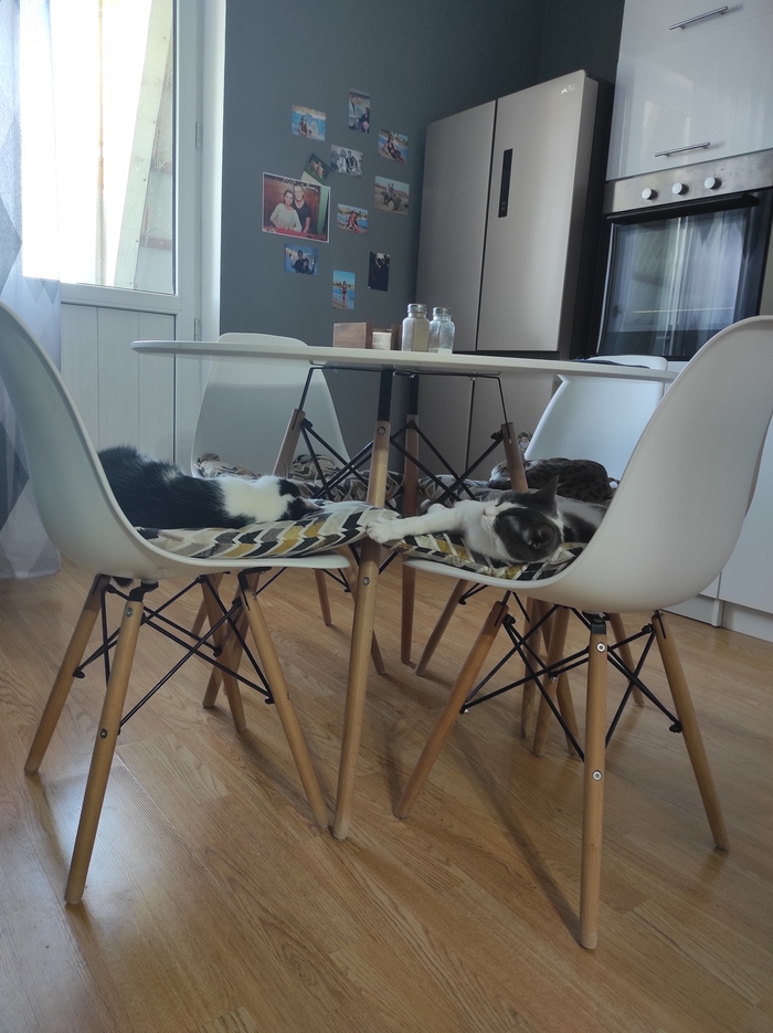 Было время -2 кошки дома. Только переехали в новую квартиру, о, ещё одну спасти нужно. Время прошло незамеченным, и тут уже 6 кошек, отлично, уютно и тепло. Все кушают любимый корм, хрустят. Что имеем: 48.8квМ. 6 пушистых, не подумайте, не кормим баландой, РоялКанин у нас в КЗ, он FR. И тут ОН, полчаса сидели думали, игра в вопрос ответ: берём,незнаю,я тоже, берём, хз, и тд. Взяли, 2 дня ок, потом испугались, решили отдать и не смогли. Мораль. Ее нет, если берёте, думаете, если думаете, ещё раз подумайте. А мы хорошо, мы курсы нашли всякие прикольные, кушаем РК и растём в тепле. Зовут песеля Честер, тот, который Беннингтон