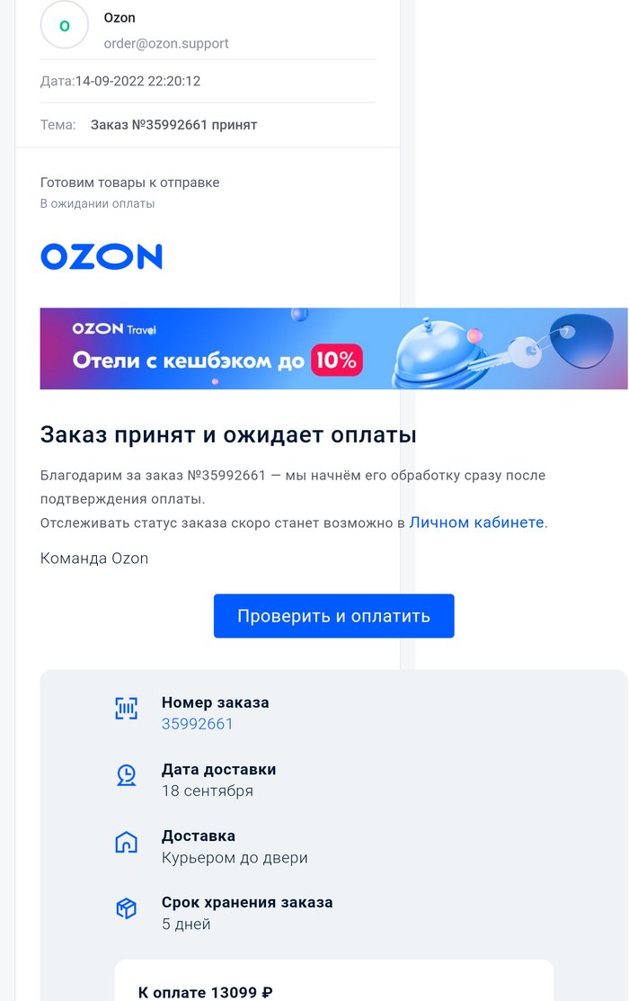 На почту-одноразку пришло письмо от order@ozon.support, цена даже ниже обещанной. В письме подозрительная ссылка на ozon.ord3927.ru, где последует оплата и прощай деньги. В чате ozon так же подтвердили, что это мошенники. "Продавец" сразу же потерял ко мне интерес, когда я вскрыл карты.