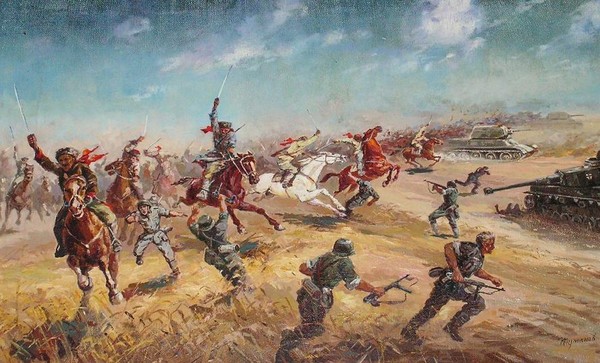 О казаках. 17-ый кубанский казачий кавалерийский корпус формировался из добровольцев непризывных возрастов. И хотя в нем было немало семнадцатилетних мальчишек, основной массив составляли сорока - пятидесятилетние мужики, прошедшие до этого и германскую и гражданскую. Это не были сумасбродные самоубийцы, как можно предположить, глянув на известное полотно, на котором всадники с шашками летят на танки. Это были обстрелянные, знающие цену жизни и смерти, умеющие взвешивать риск бойцы, понимавшие, на что они идут. В большинстве своем они были куда более опытными и стойкими морально воинами, чем двадцатилетние мальчишки, чье отступление они прикрывали. И они отлично знали – за что идут в бой. В том числе – и за отступающих мальчишек.
