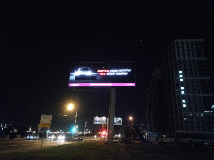 Идея была в том, чтобы разместить в виде баннера на этом рекламном щите призыв для водителей - не шуметь по ночам :) Формулировка сильно кривая, и это вы увидите позже.
