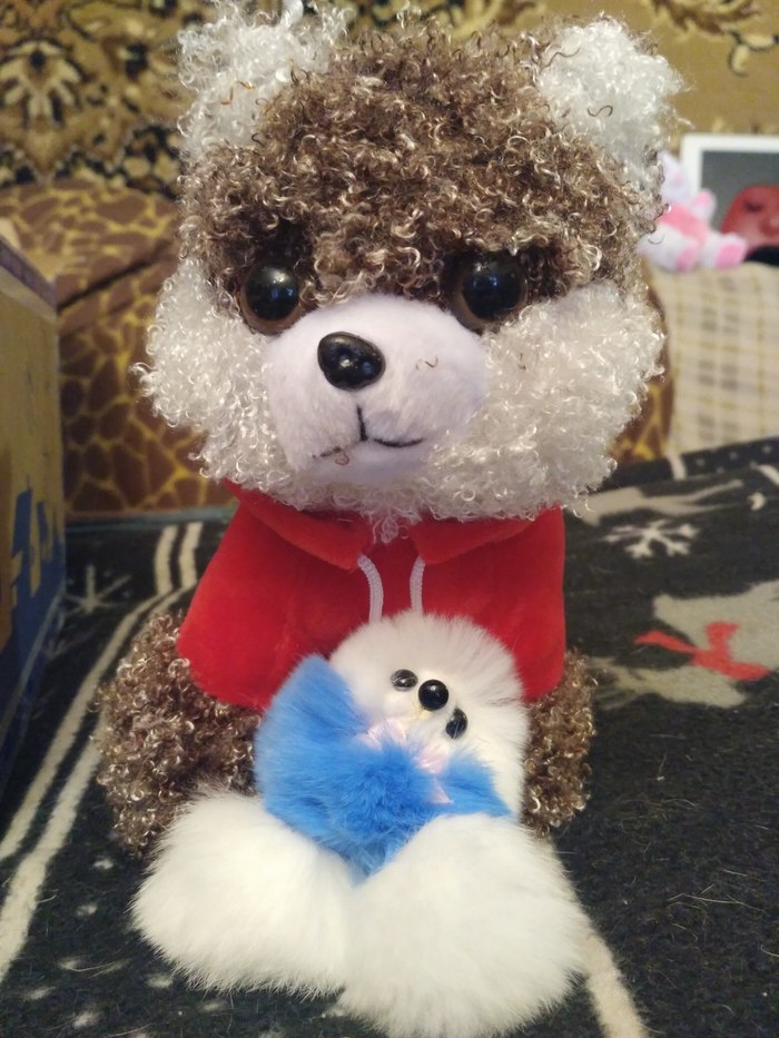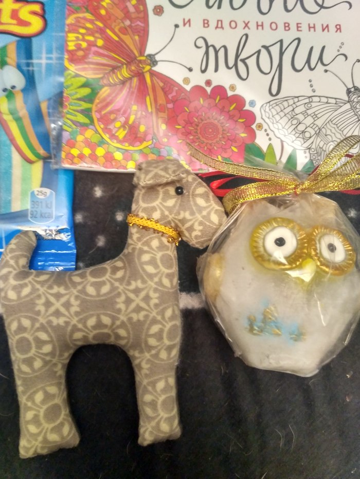 В посылочке обнаружилась прекрасная мягкая игрушка, которая уже лежит со мной в кровати )) и очень приятный на ощупь брелок )